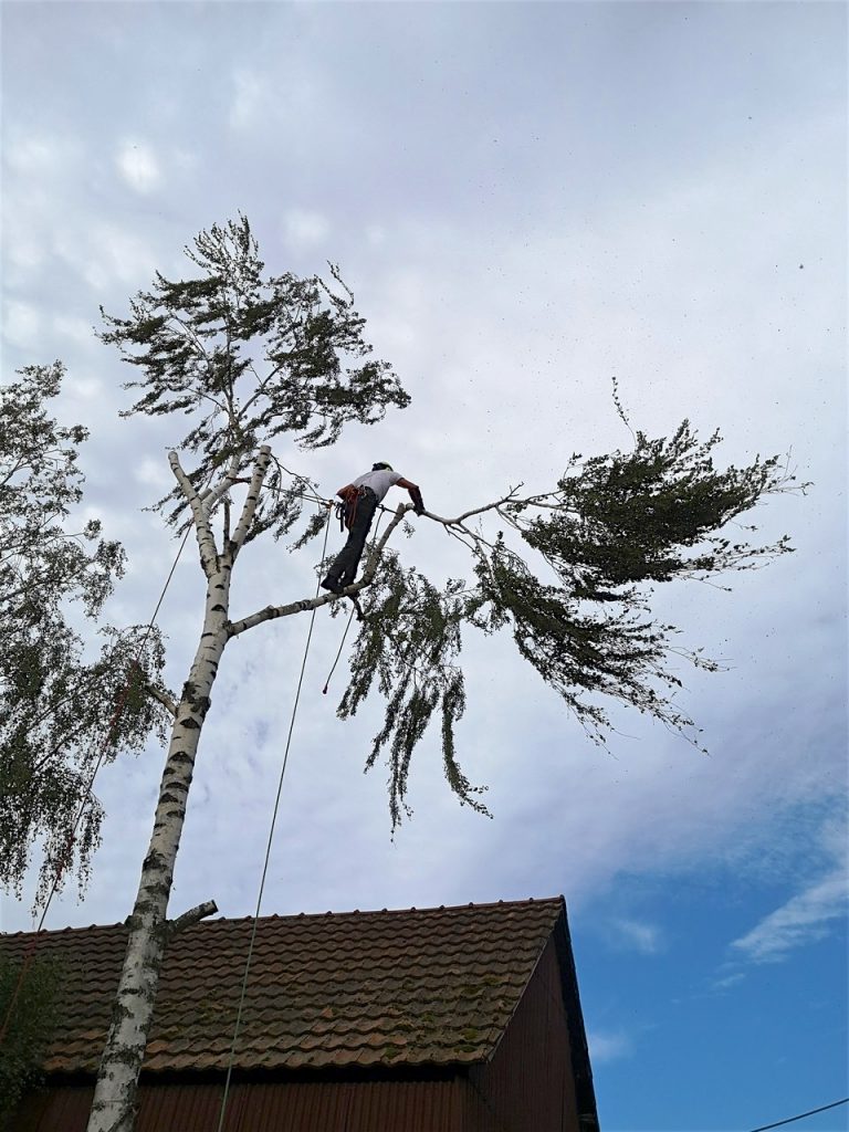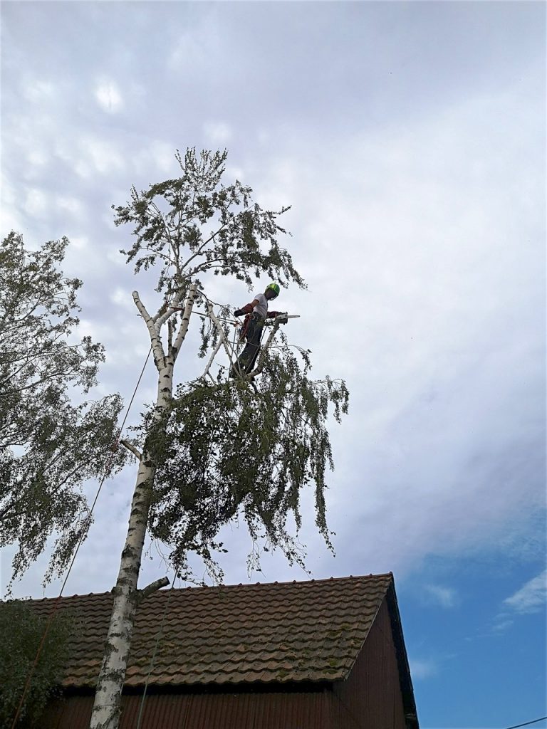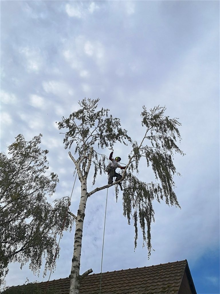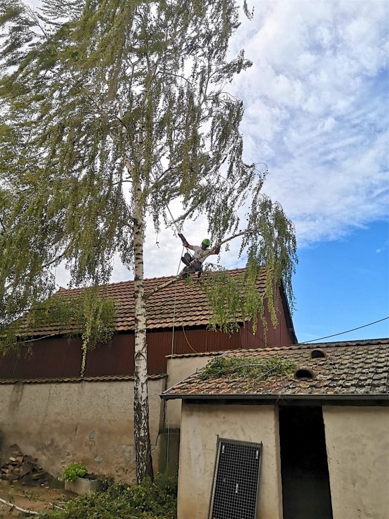 Exemple de démontage d’arbre à proximité d’habitations, en toute sécurité et sans utilisation de nacelle.
