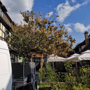 Ces tarifs n’incluent pas les frais supplémentaires dans le cas de l’élagage de très grands arbres (nacelle, grue, …) ou les frais de déplacement.