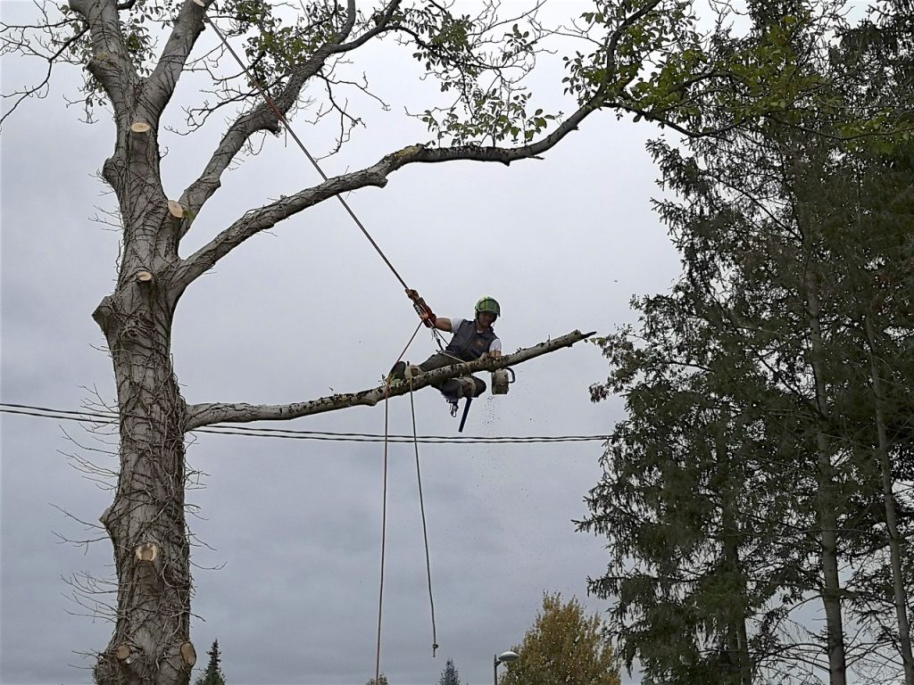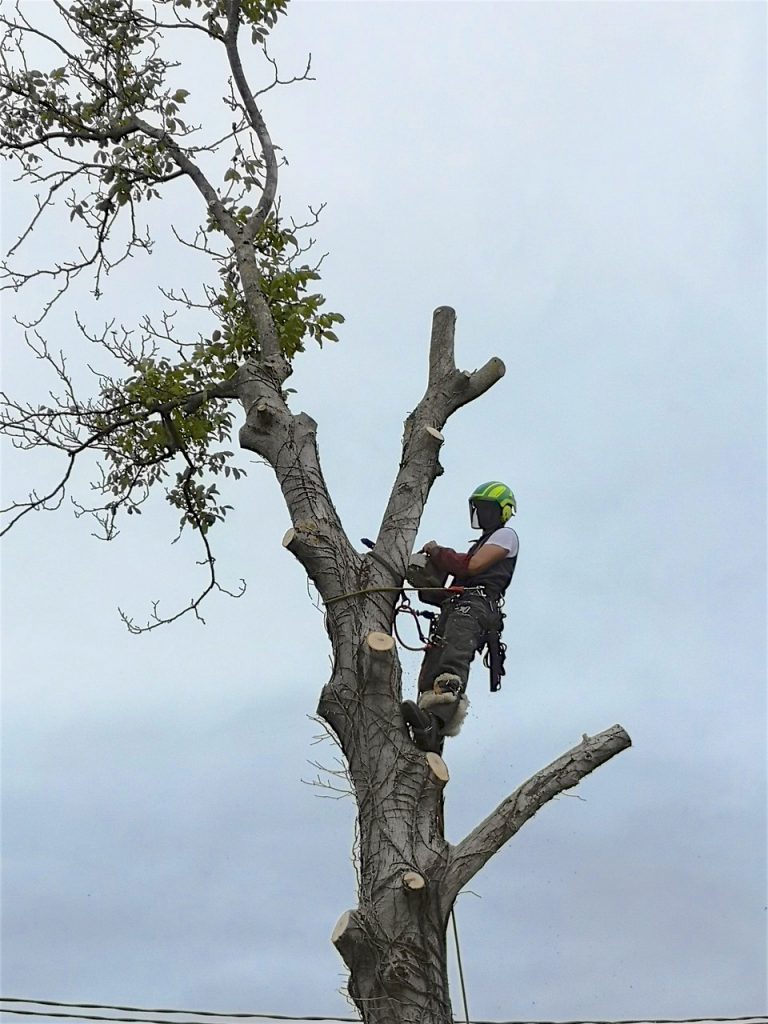Le démontage avec rétention permet de s’adapter à la contrainte au sol. L’arbre est tronçonné par segments dont la chute est contrôlée à l’aide de poulies et de systèmes de freins.